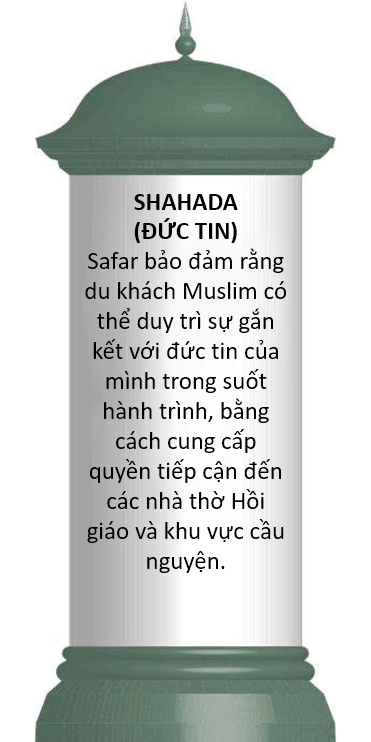 Chúng tôi lồng ghép các trụ cột này vào trong dịch vụ của mình để bảo đảm mọi khía cạnh của trải nghiệm du lịch đều phù hợp với các giá trị Hồi giáo.