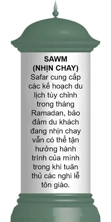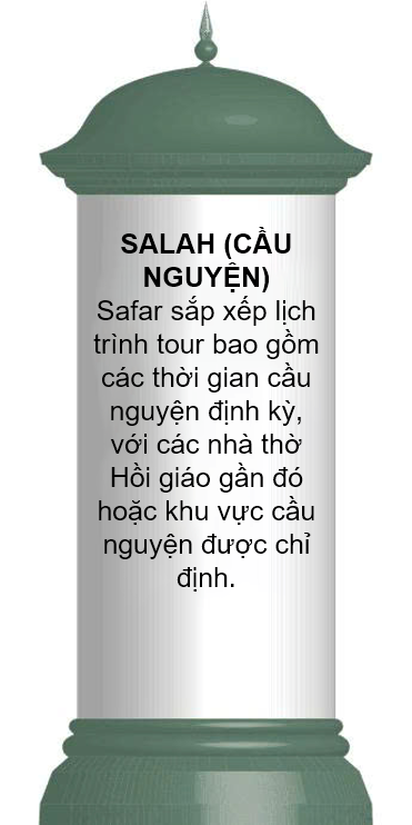 Safar Travel Vietnam chu đáo sắp xếp các khoảng nghỉ cầu nguyện trong mọi lịch trình và có thể cung cấp: