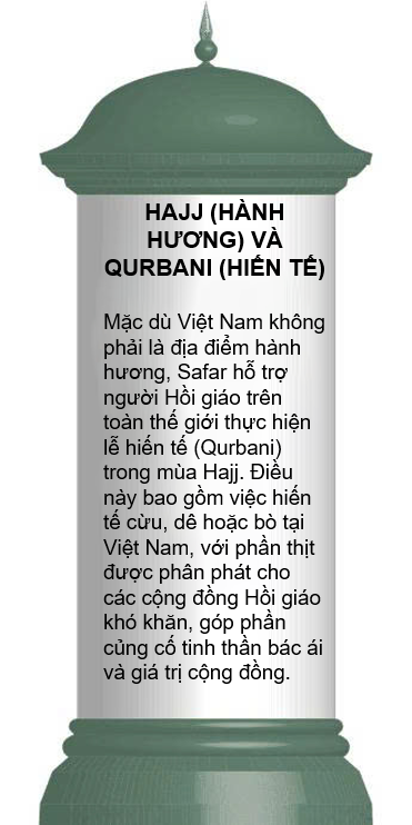 Du khách từ khắp nơi trên thế giới có thể tiến hành lễ hiến sinh Qurbani tại Việt Nam, với Safar hợp tác cùng cộng đồng Hồi giáo địa phương để quản lý mọi khâu từ tổ chức đến phân phối.